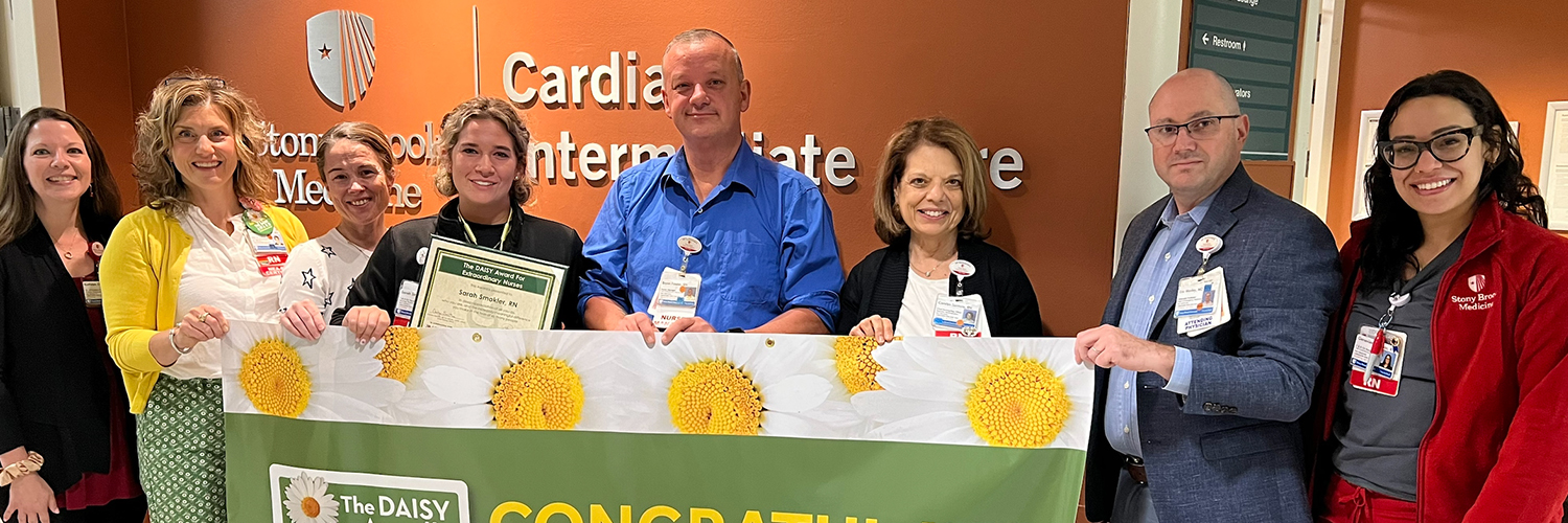 Stony Brook University Hospital recently introduced the DAISY Award for Nursing Excellence and recognized Sarah Smokler, RN, 16 South/Cardiology as the first hospital-wide Stony Brook University Hospital recipient in June 2023 for the outstanding care and compassion she displays to her patients. She was nominated by a former patient who shared a story of how Sarah provided her with kindness and support during an anxious moment during her hospitalization.